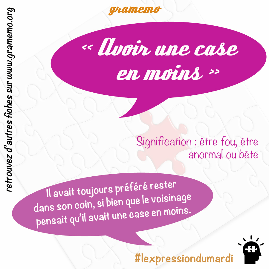 Bonsoir à tous ! La dix-huitième édition du défi #lexpressiondumardi vous propose aujourd’hui de découvrir l’expression « avoir une case en moins ».