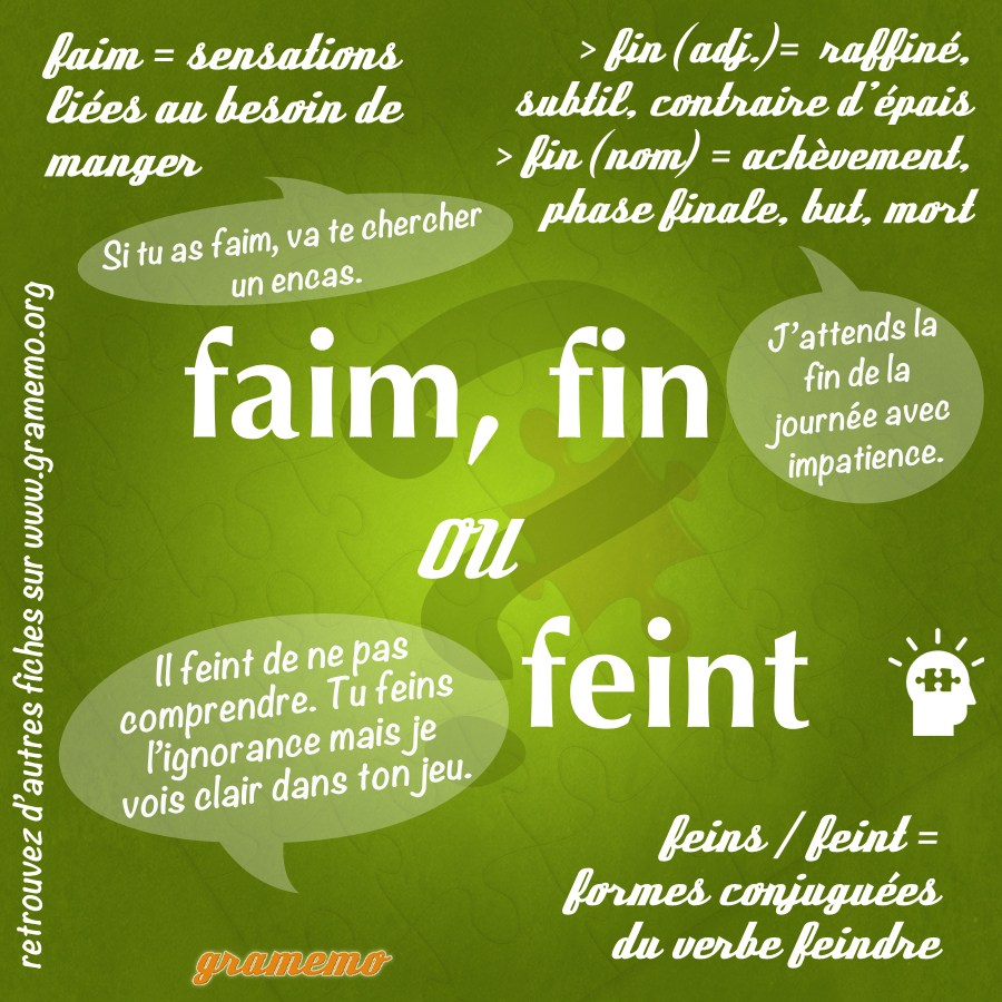 Cet article vous aidera à bien utiliser les homophones faim, fin et feint.