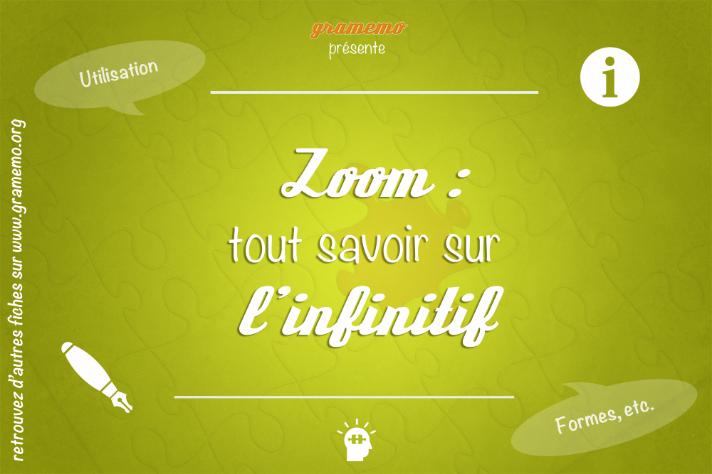 L’infinitif est la forme sous laquelle on trouve les verbes dans le dictionnaire. Un verbe à l’infinitif n’est pas conjugué et ne porte pas de marques de personnes.