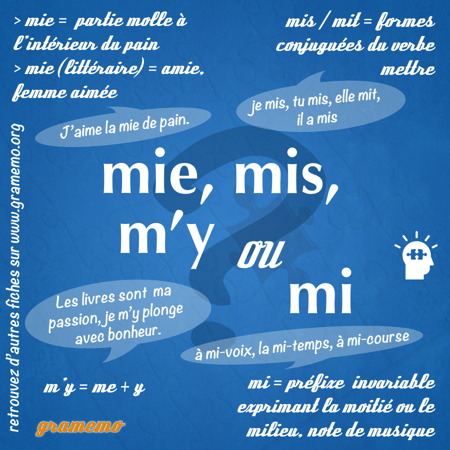 Nous allons aujourd’hui étudier (brièvement, rassurez-vous !) les homophones mie, mis, m’y et mi.