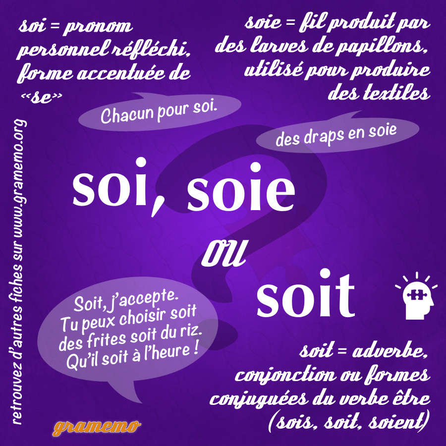 Cet article vous aidera à bien différencier les homophones soi, soit et soie.